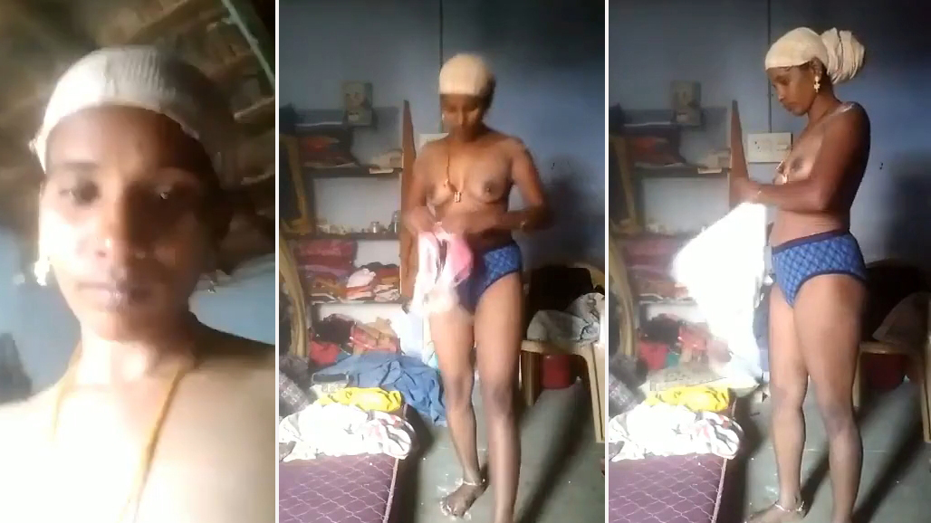 Tamil housewife seductively touches saggy tits and XXX pussy on cam