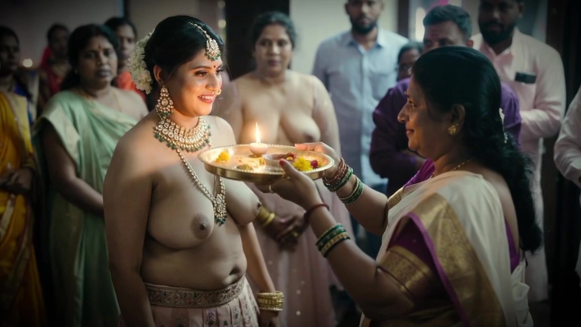At the wild Indian wedding, this busty bride "accidentally" unleashes her massive, bouncy tits right in front of shocked guests. Jealous groom fumes as everyone ogles her huge brown nipples. She grinds 'em teasingly, turning the ceremony into a public tit-fest. Cuck rage peaks when she shakes 'em in his face pure desi debauchery!